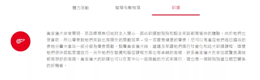 除了可成為家中心愛的寵物外,牠們也可執行搜索任務或擔任導盲犬的工作,所以黃金獵犬也是一個相當多才多藝的品種。