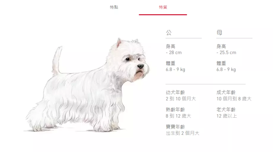 以下說明西高地白㹴的有趣小常識,包括品種具體特徵以及一般健康概述